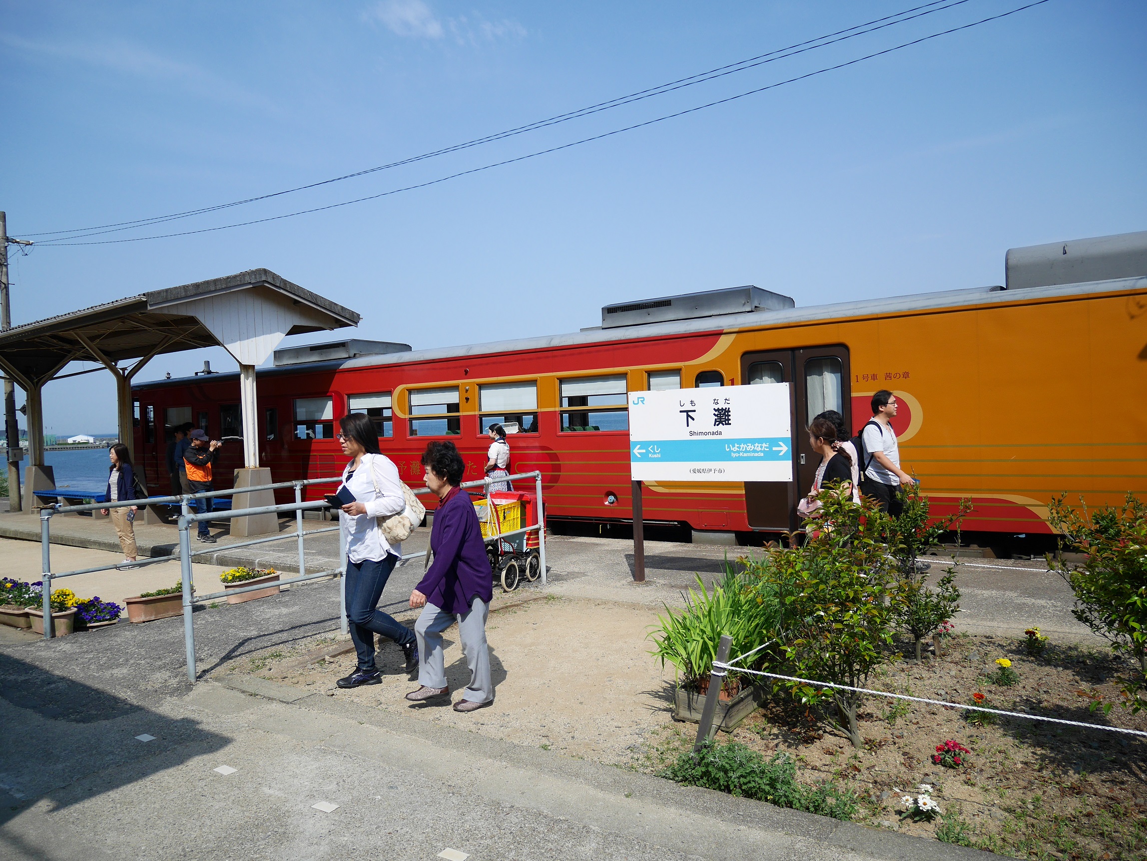下灘駅で10分休憩。この駅から見える夕日が大変綺麗との事。