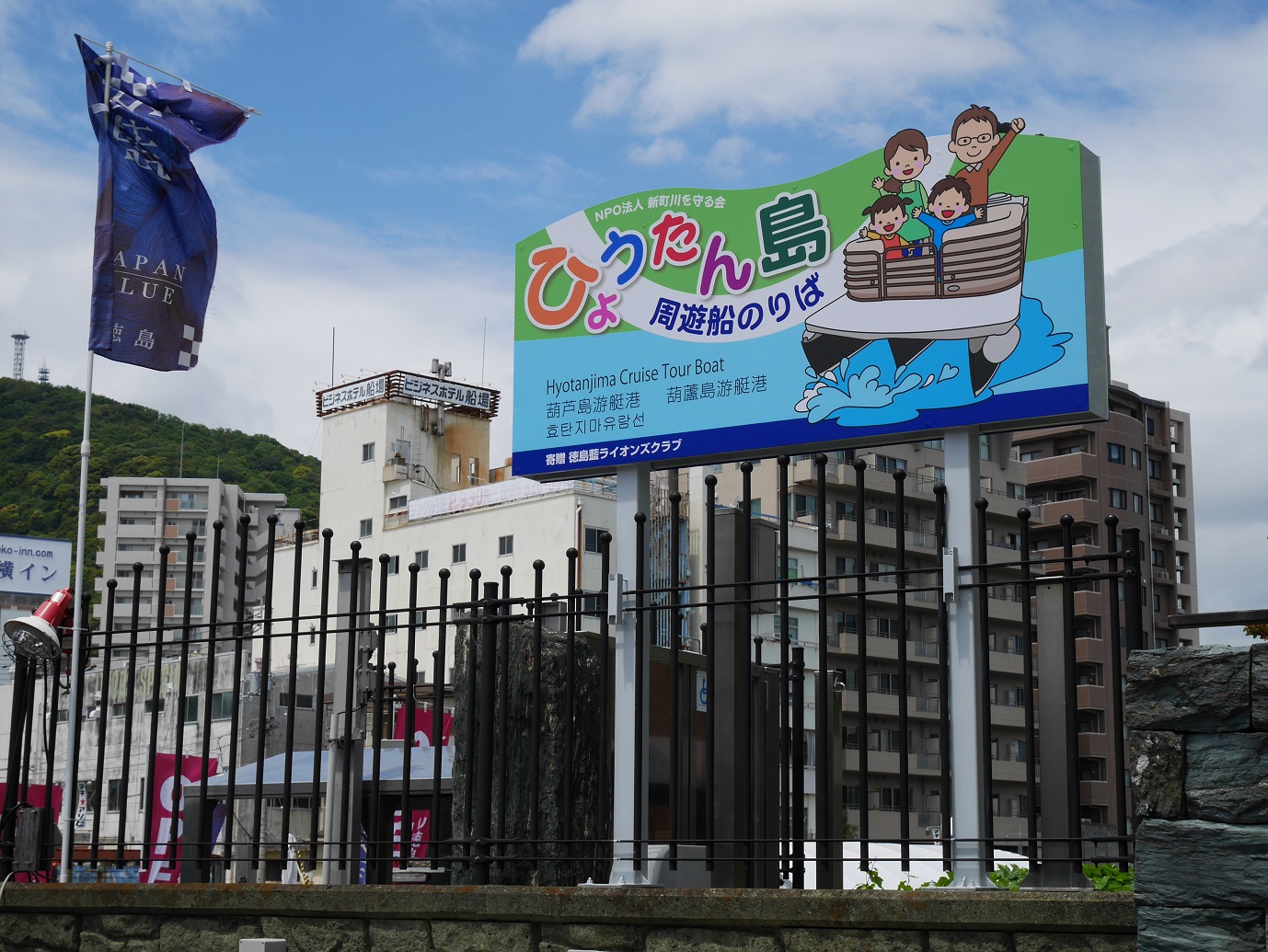 鳴門わかめうどんと鶏天。振り返ってみればなにげに麺類が間食のぞいて4連続なのに気づく。でも美味しかったので気にしない。食後はひょうたん島クルーズへ。