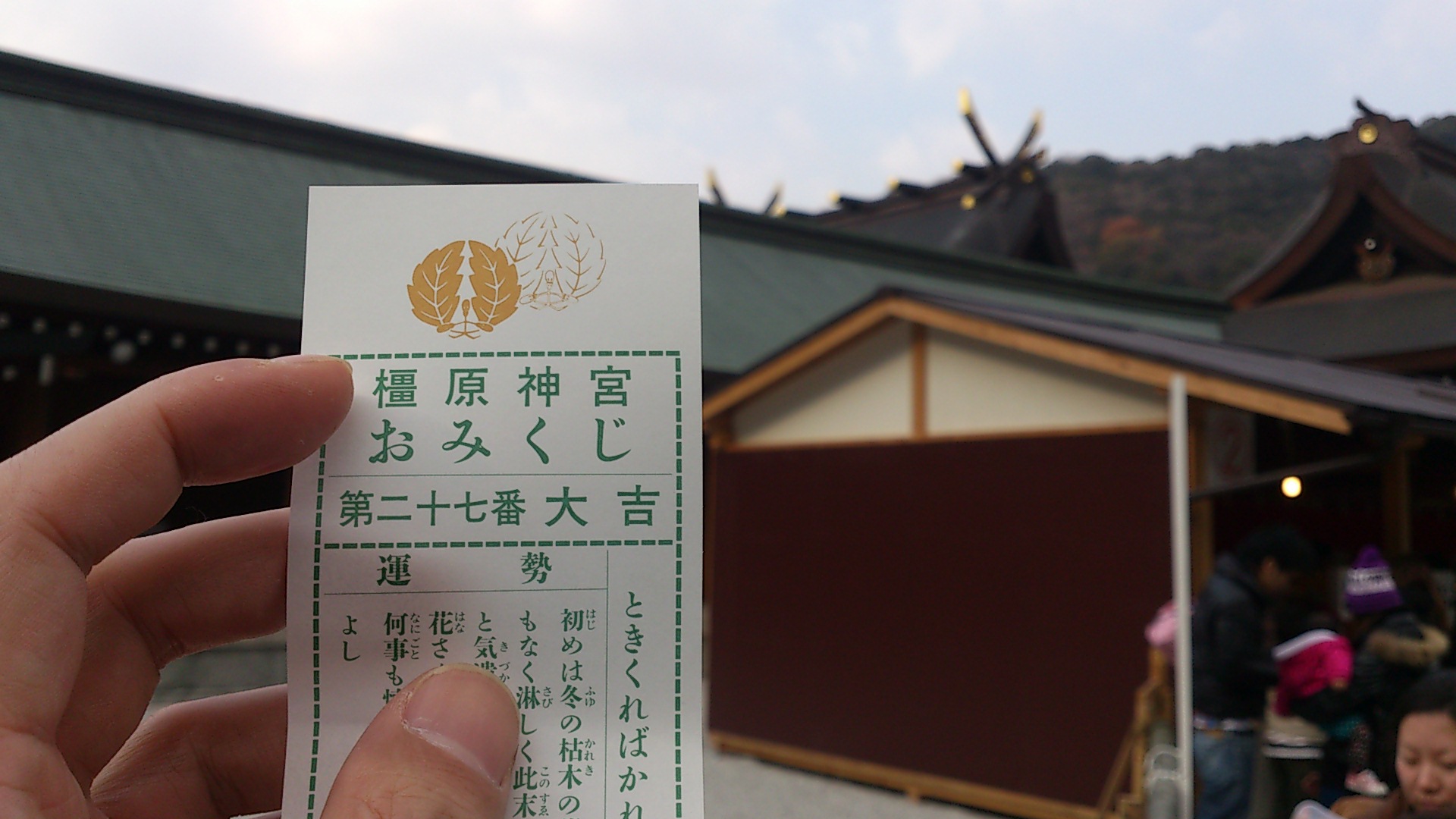 明けて元旦。橿原神宮へ初詣。思ったより混雑してなくて良かったです。今まではどうせ元日にわざわざ初詣する必要もないだろうと思ってたのですが、来年からは恒例行事にしようかと思っています。