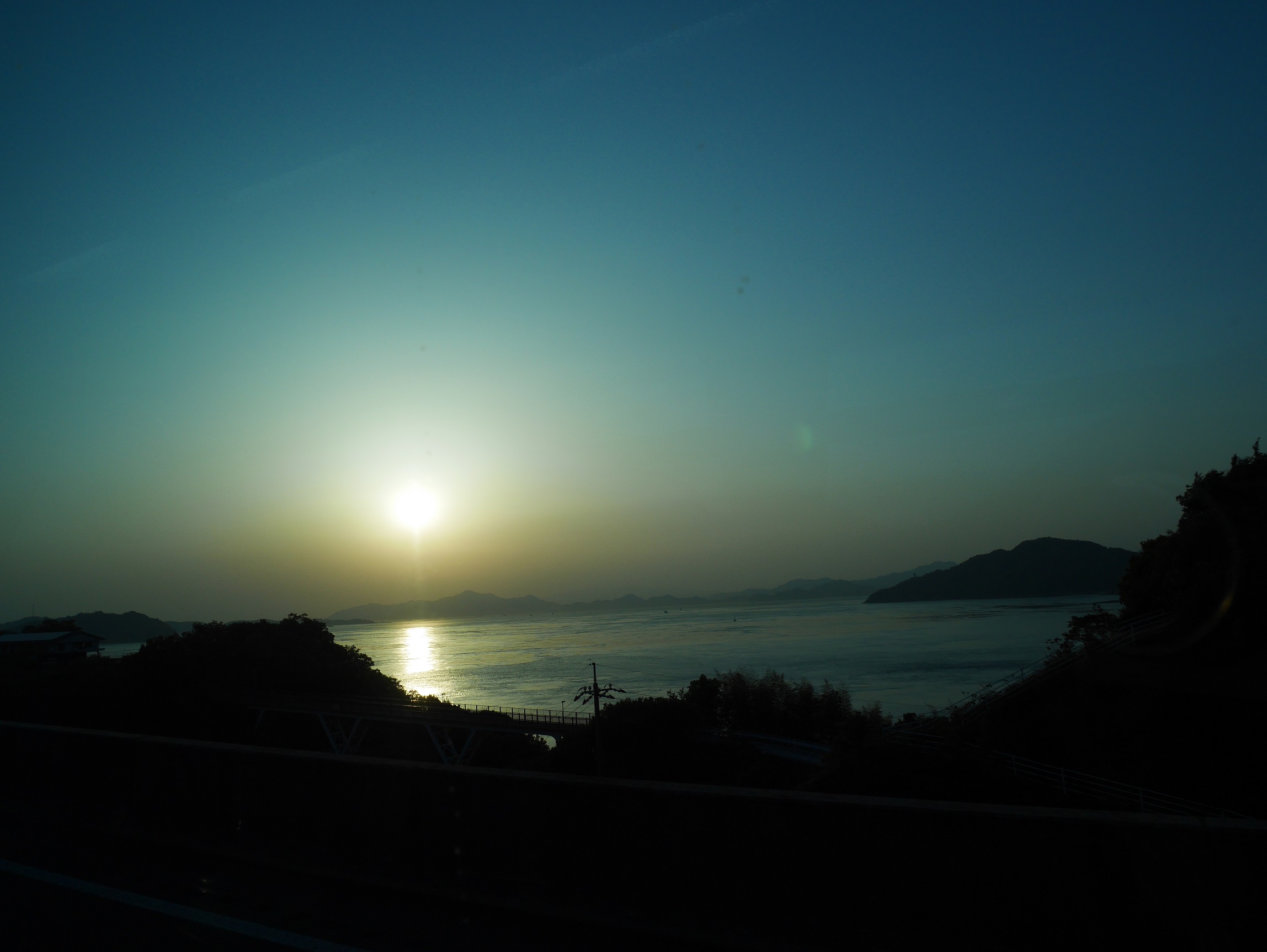 景色を楽しみにしてたのですが、道中の大半は山の中で少し拍子抜け。肝心の夕日もいい感じに見れずに気づけば今治駅に到着。