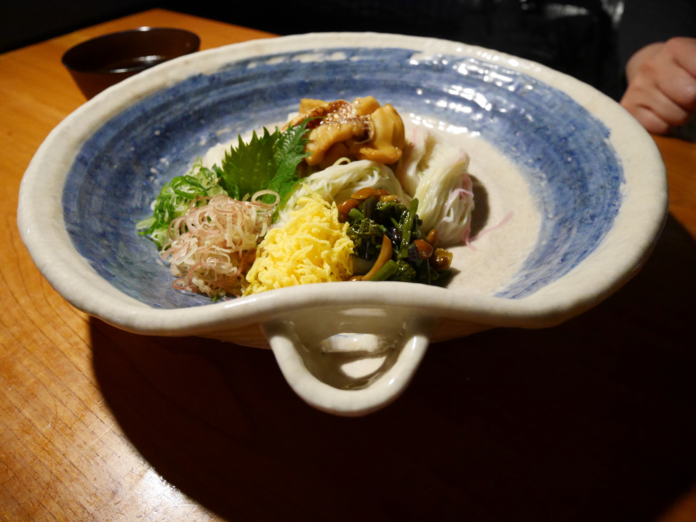 五色そうめん。鯛の煮付けとそーめんを、色んな薬味を入れつつ煮付けのお出汁にくぐらせて食べる、といえば味の想像が付くと思います。ボリューム有りすぎてこの時点で満腹になったけど・・・。