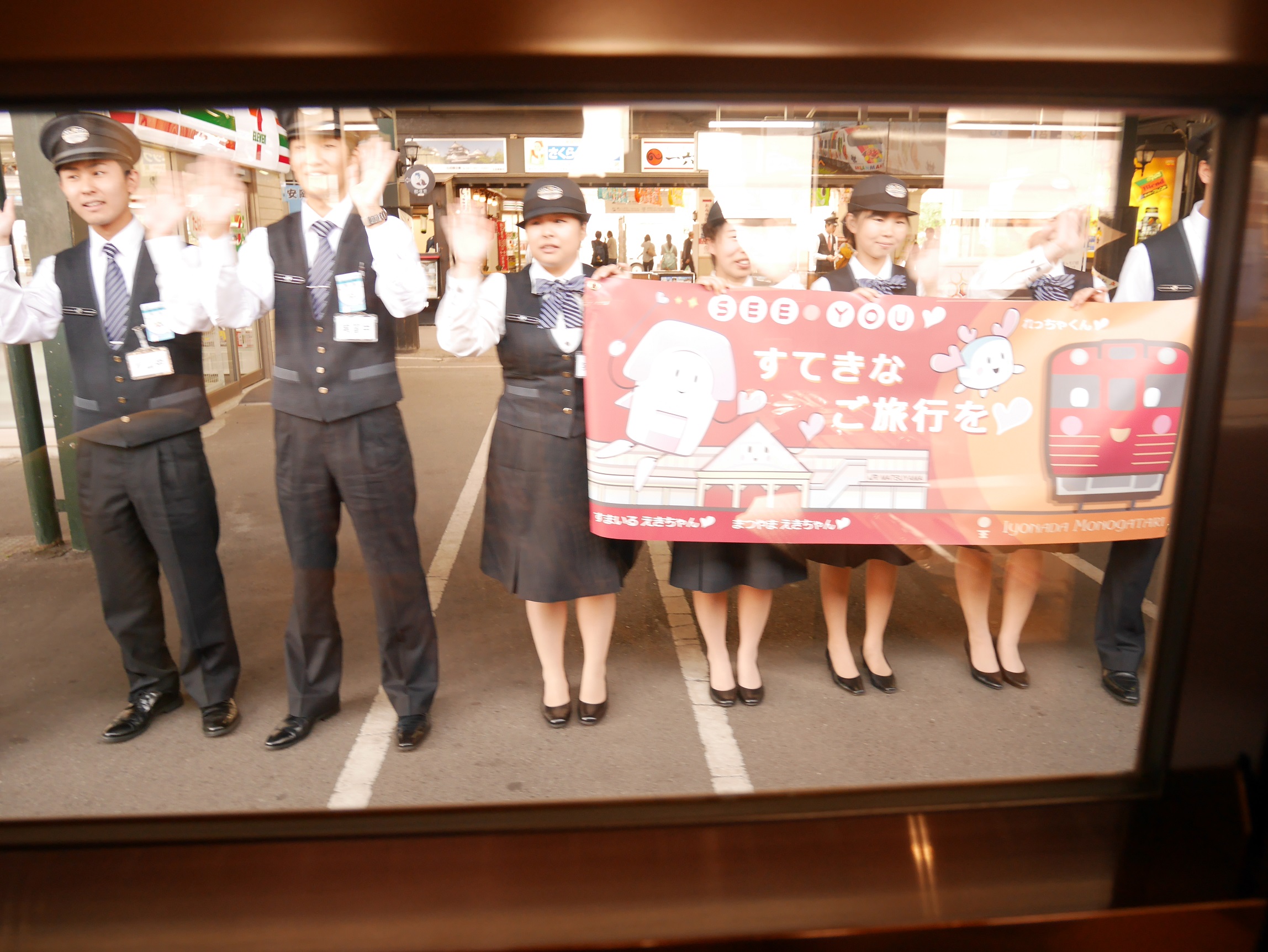 駅員さんに見送られて出発。
