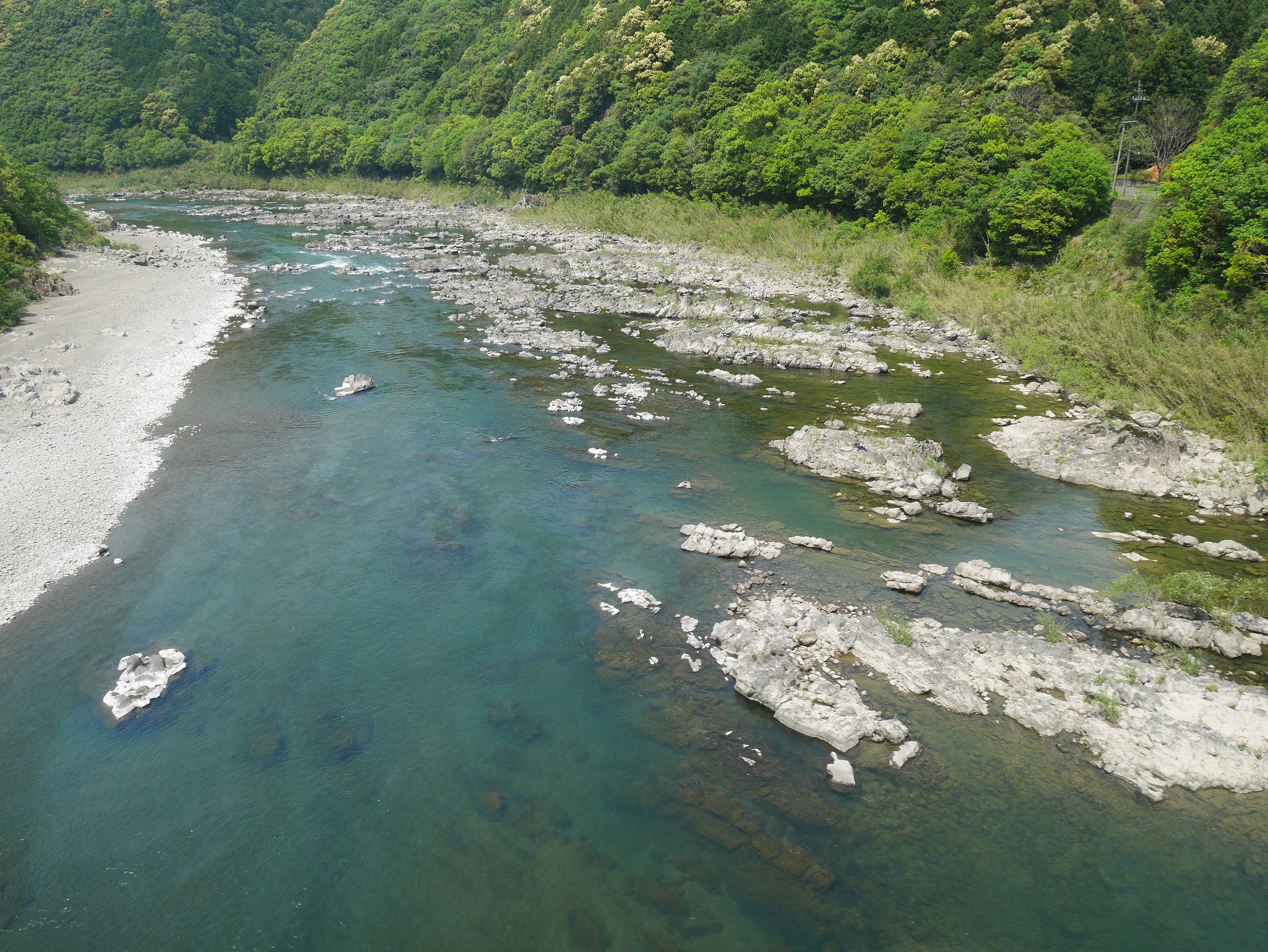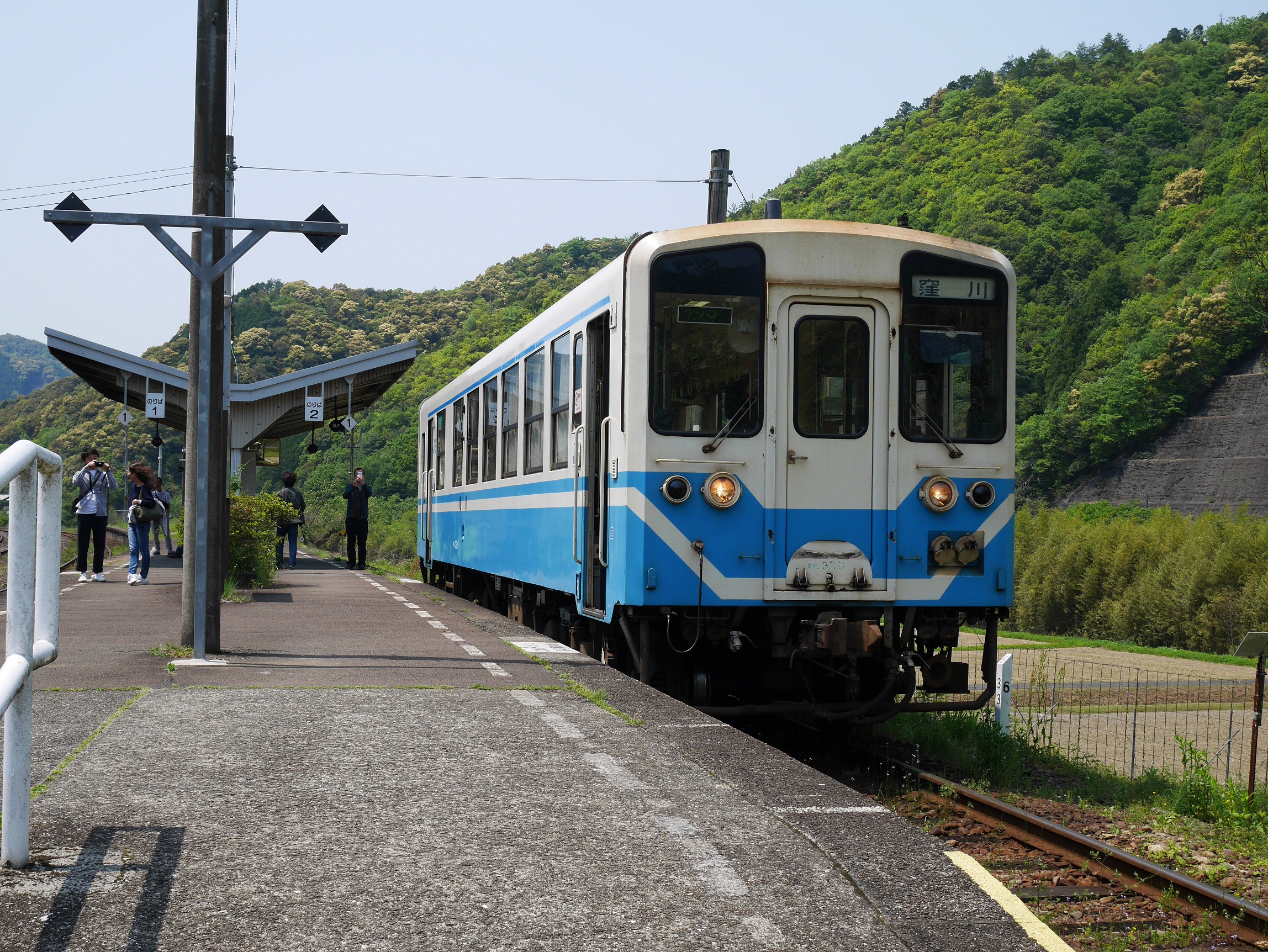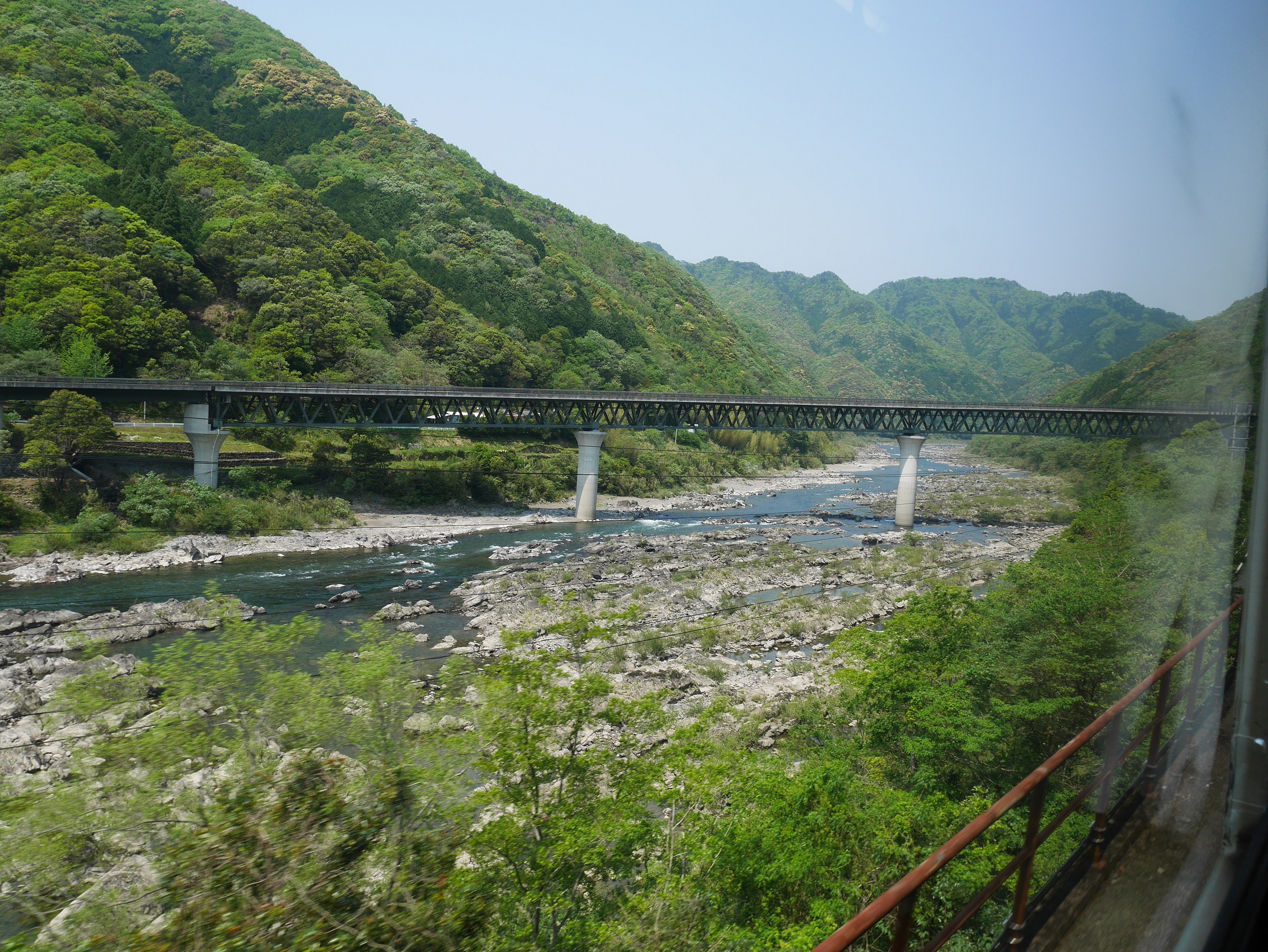 いずれ清流四万十川沿いを走る。子供のように席の上に正座して景色を眺めたくなる衝動にかられるも我慢。車内の乗客は皆、カメラ片手に景色を見ている。どうやら大半が住民ではなく観光客のようである。