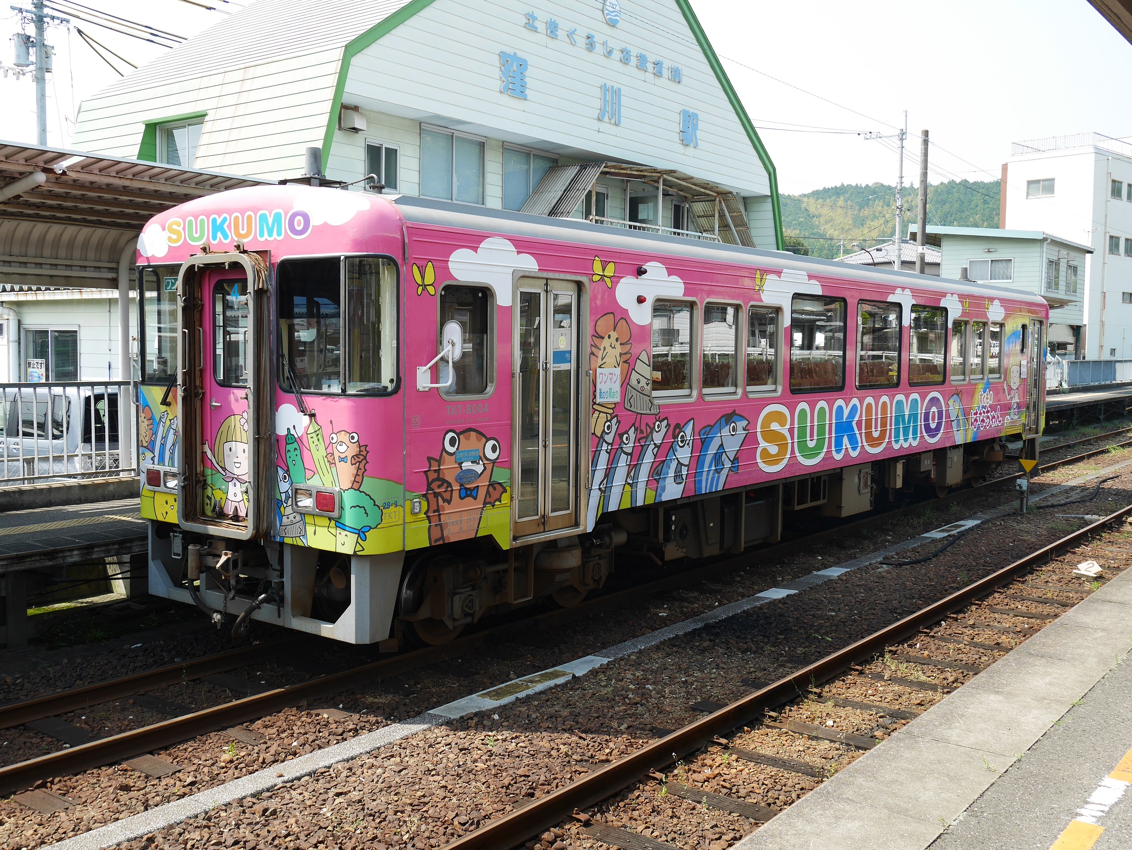 2時間10分の長いようで短い鈍行列車の旅が終了し、窪川駅に到着。我々の目的地とは反対側の宿毛行きの列車を撮影。
