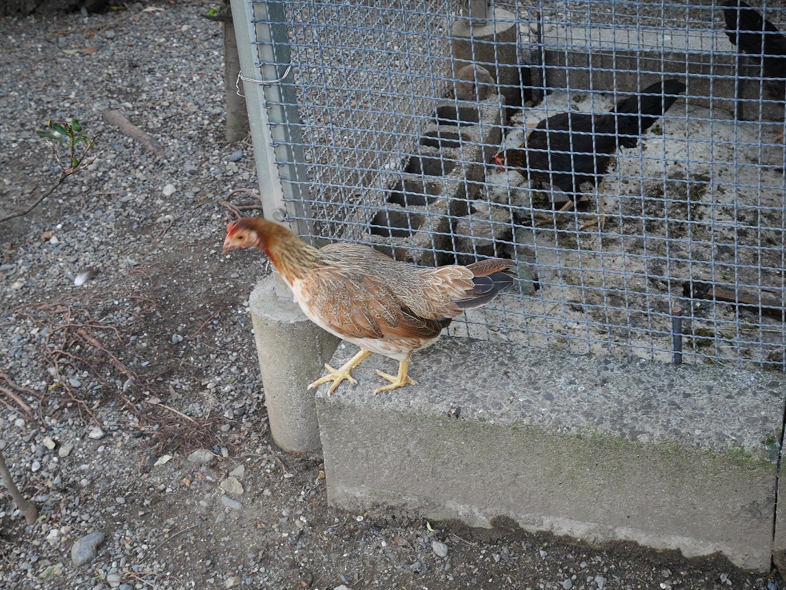 放し飼いの鶏の中には烏骨鶏も居た。正確には烏骨鶏かどうかは分からんが、きっと烏骨鶏であろう鶏が居た。