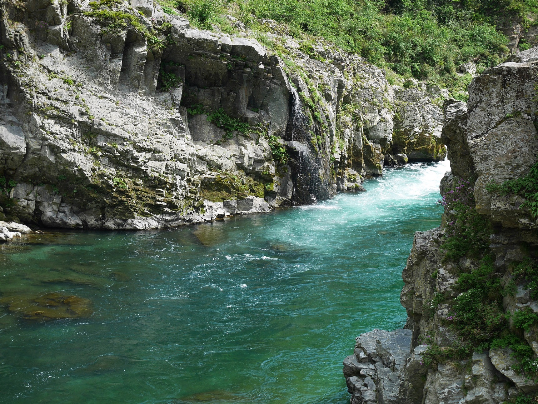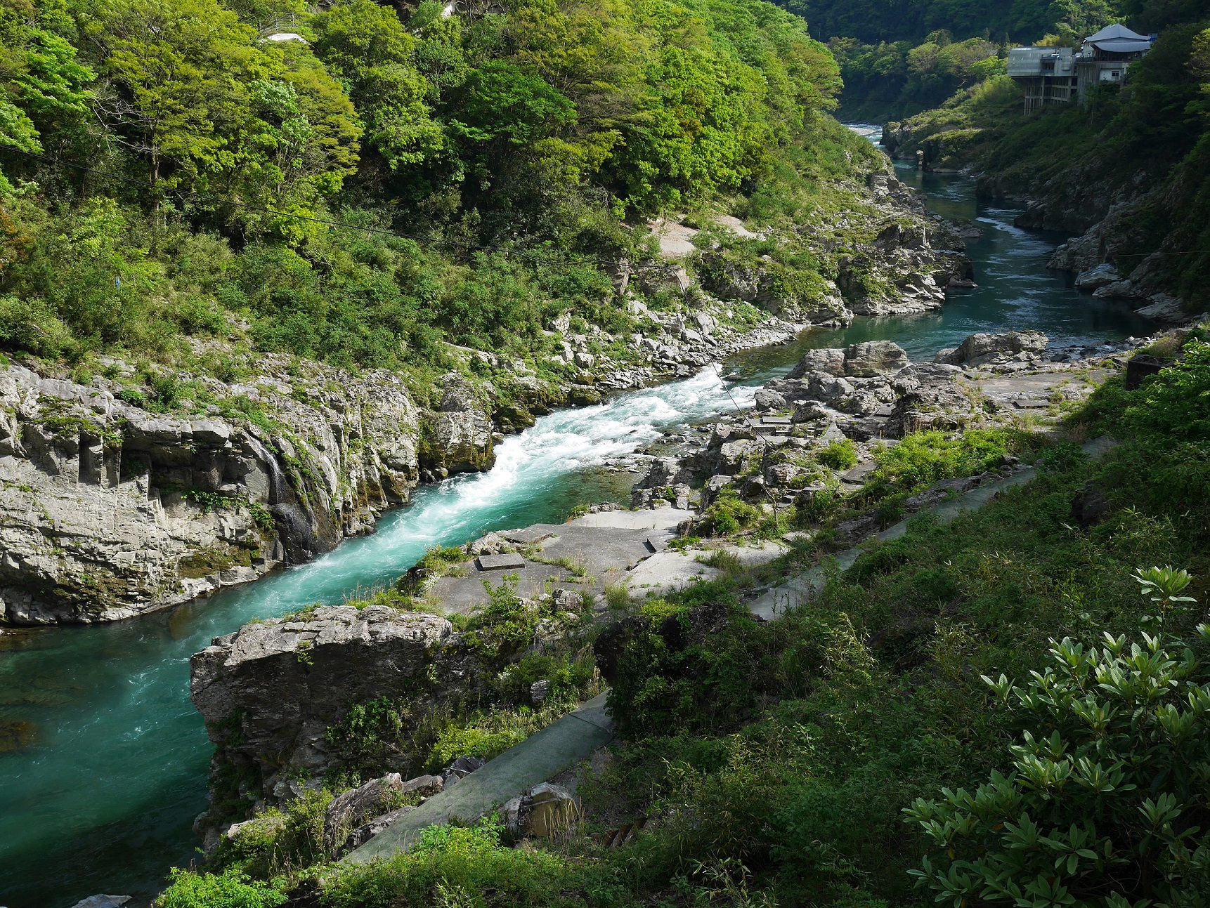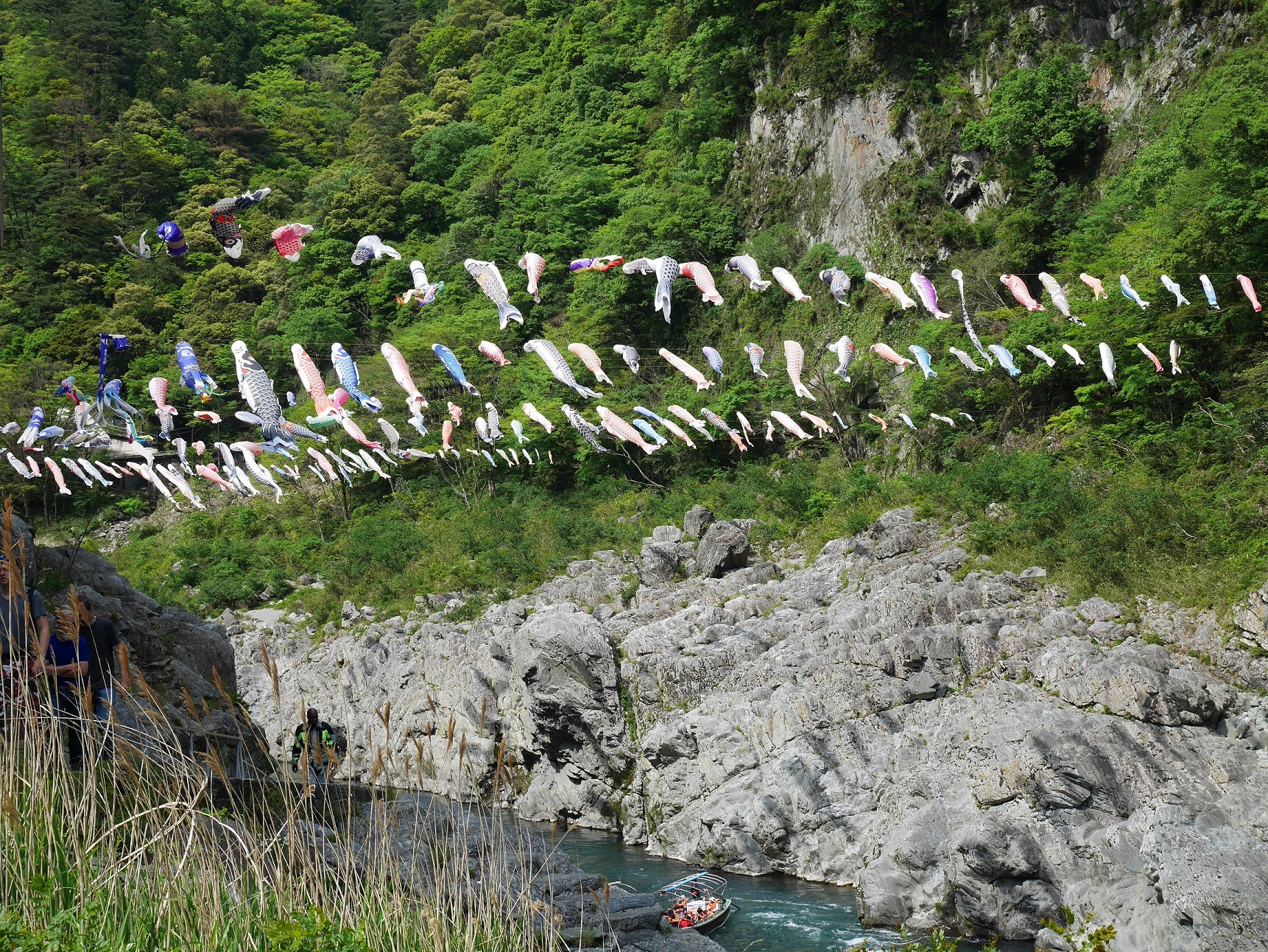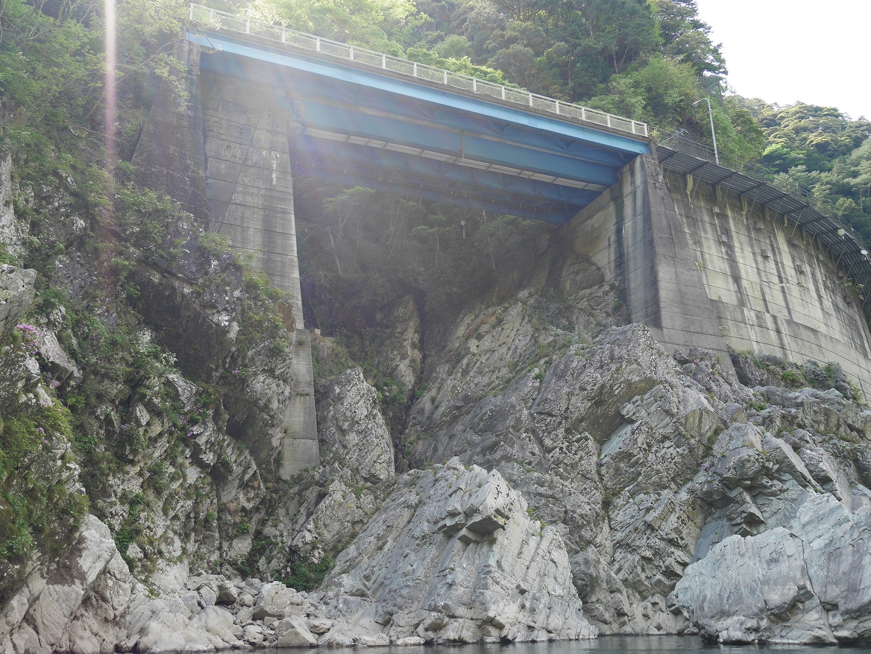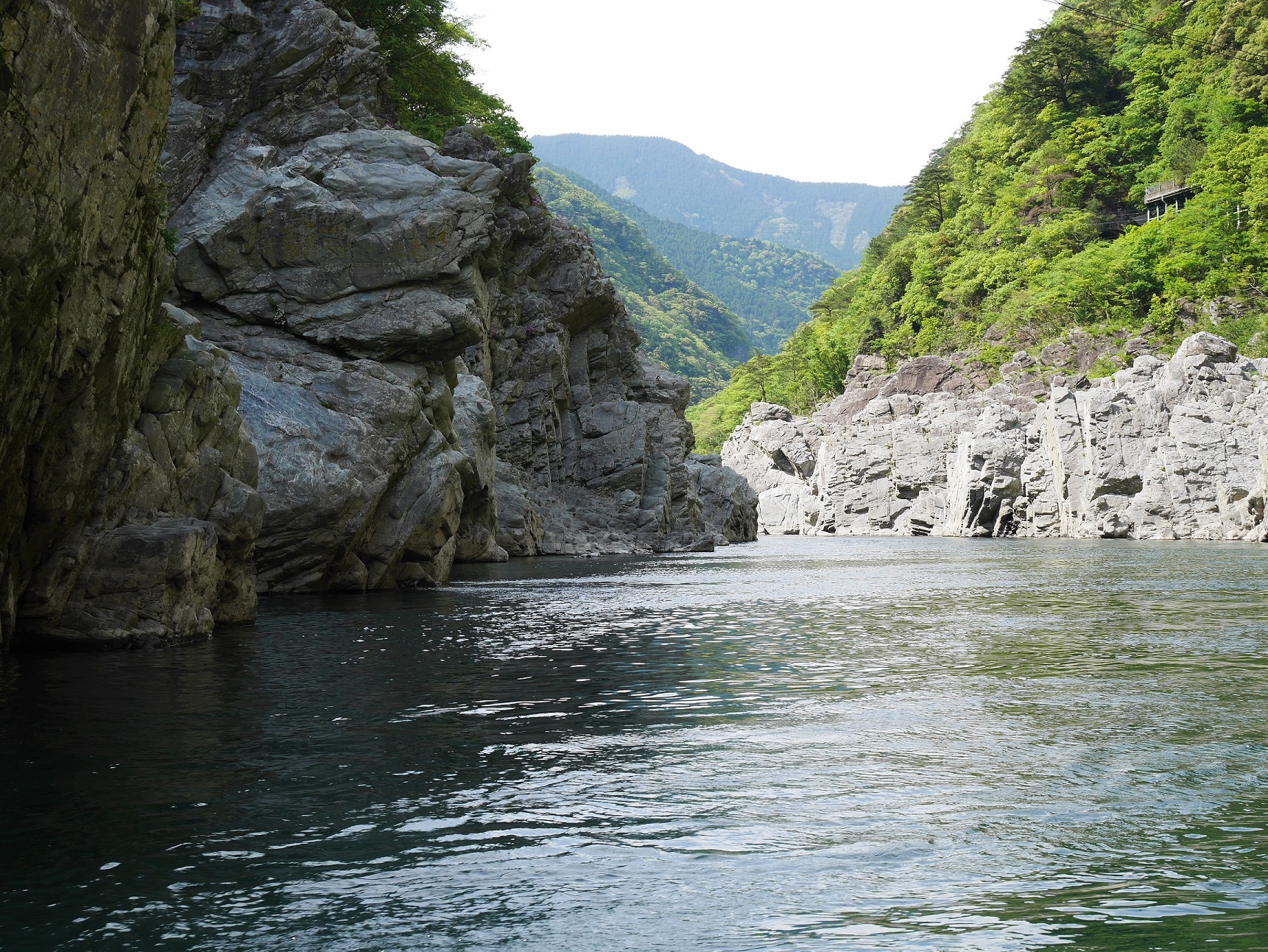 代わる代わる出発するその船は定員15名にも関わらず、絶えることなく乗船客が訪れておりこりゃ儲かるなぁと感心。確かに船からみる吉野川沿いにせり立つ岩肌は、幾星霜かけて形成された絶景であり、人工的に造る事は出来ない代物です。