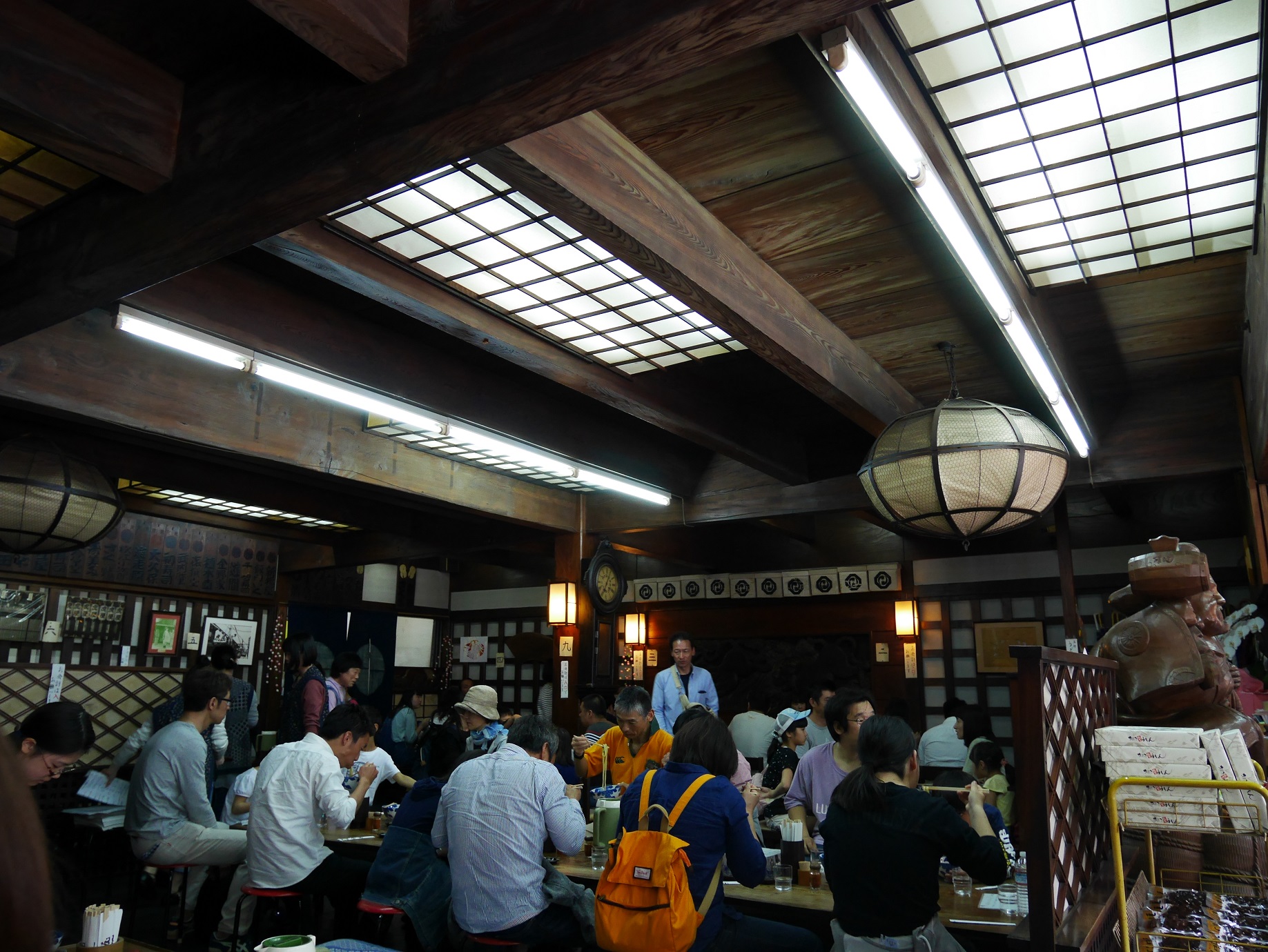 下山後、小腹が空いたので雰囲気のあるうどん屋さんに入店。ものすごい回転率で、多くのお客さんをさばいていました。