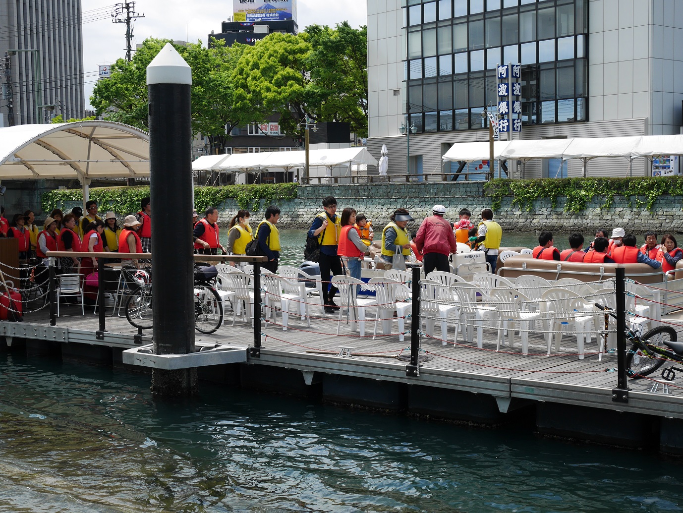 乗り場には既に人だかりが。どうやらここから船でイオンモールに行けるようになったと昨夜のニュースでも放送されていたので、そういった影響もあってか人が多かったのかもしれません。