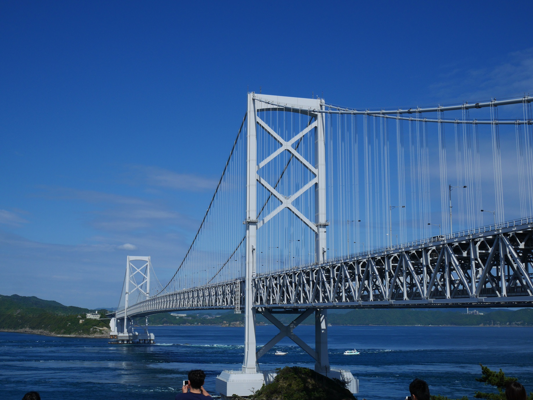鳴門観光港に到着しうずしお観潮船に乗車。これまたアホみたいに船に人を載せ、沈むんちゃうかという位のすし詰めでした。時間帯はちょうど渦潮が綺麗に見える絶好機なので、この機を逃す手はないという状況だったので文句を言いながらも渦潮鑑賞を堪能。その後は大鳴門橋の下にある渦の道から渦潮鑑賞し、鳴門公園で竹輪とビールで小腹こなし。