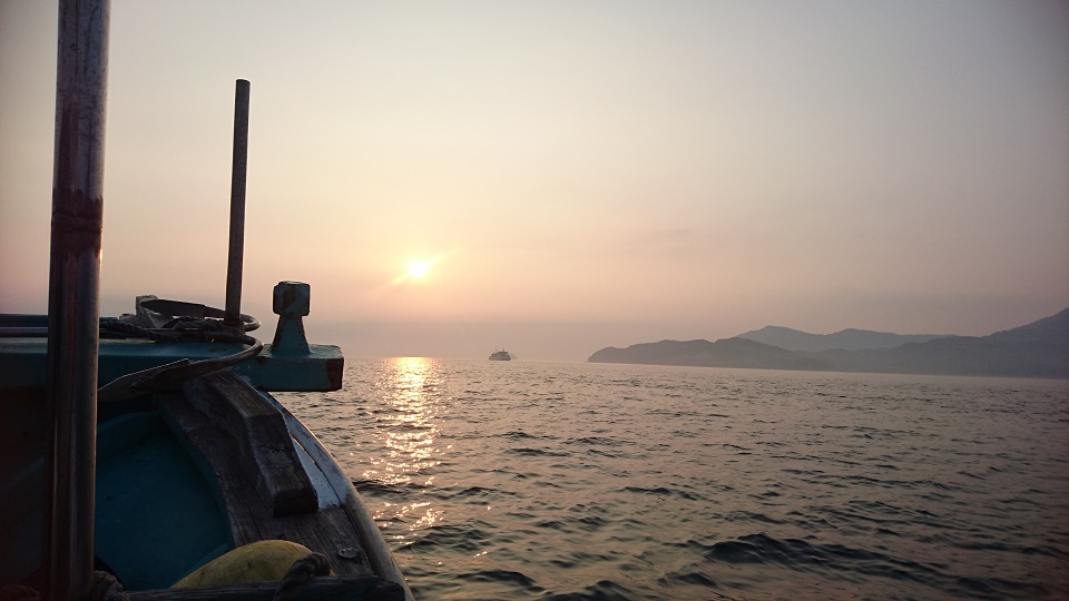 久しぶりの瀬戸内海で見る朝日。波は穏やかで、海の上に浮かんでいるだけで癒されます。
