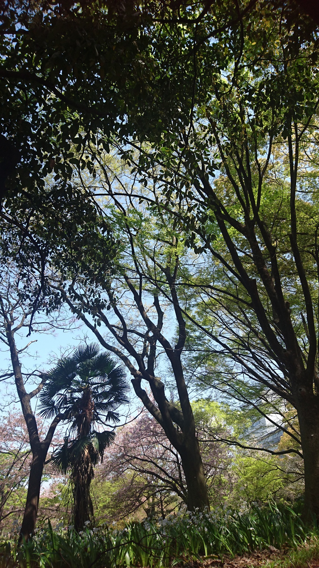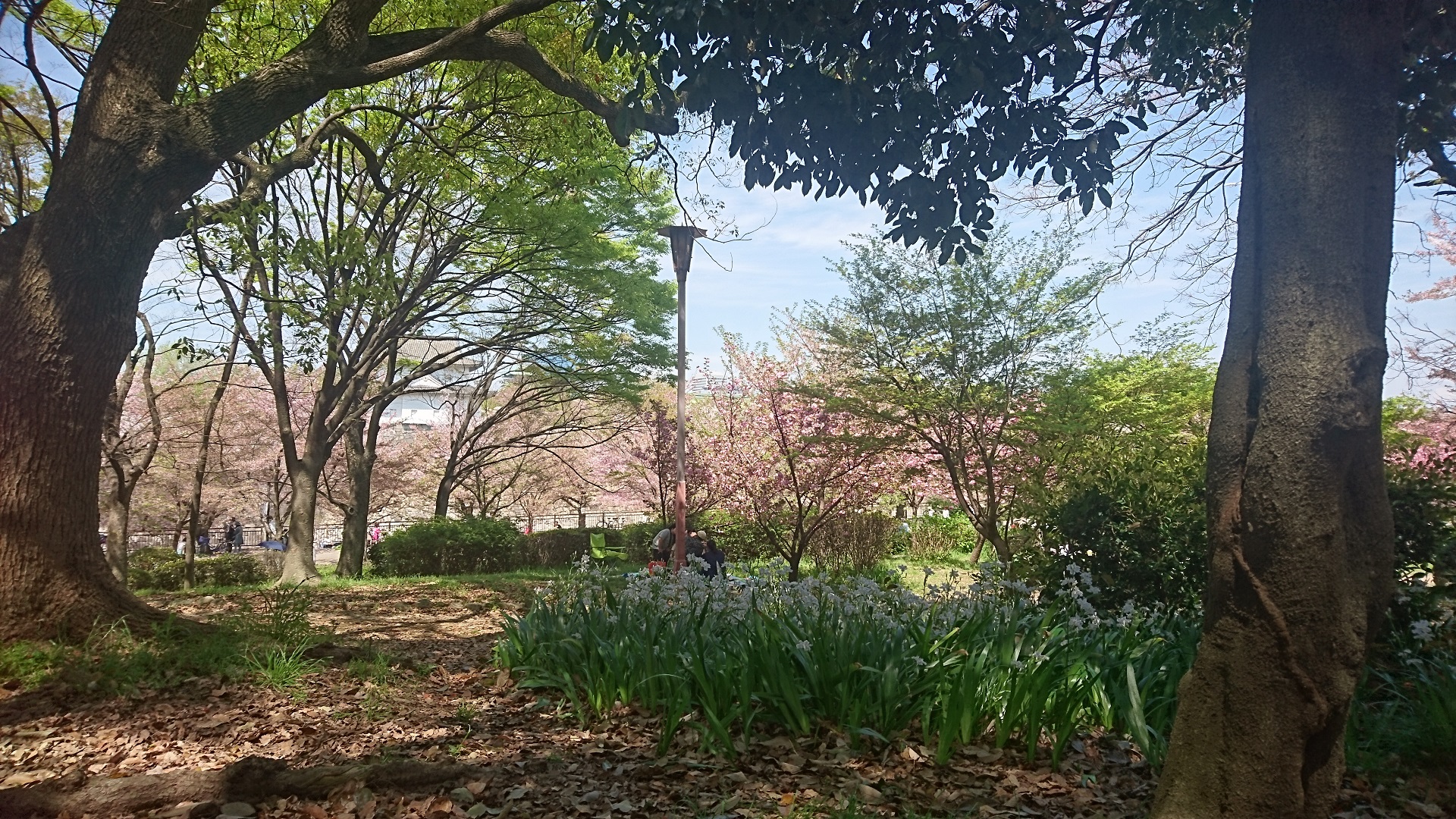 若干まだ花を散らしていない桜が見え、人影もまばらなスポットに腰を下ろし直します。