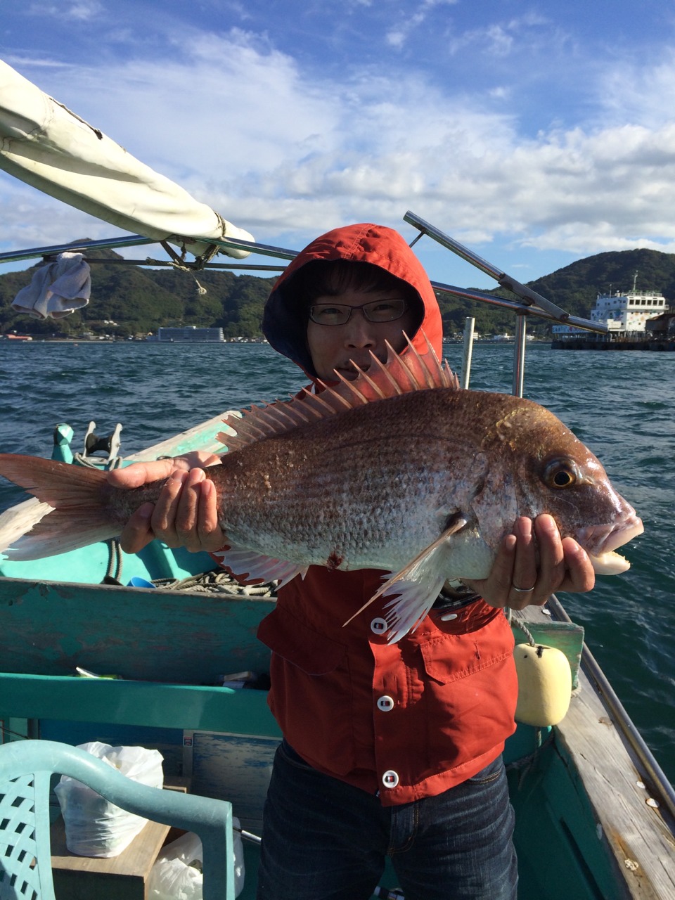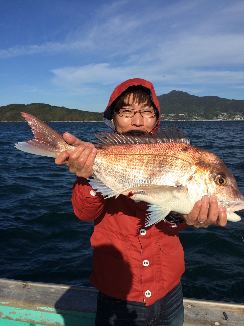 これは真鯛特有の引きだな、と思いその引き味を楽しみながらリールを回していると、更にグッという衝撃と共にリールを巻いても巻いても、糸が出て行くという現象。ドラグが緩いのかなと少し強めにして時折くる竿を持っていかれる衝撃に耐えながらしばし。