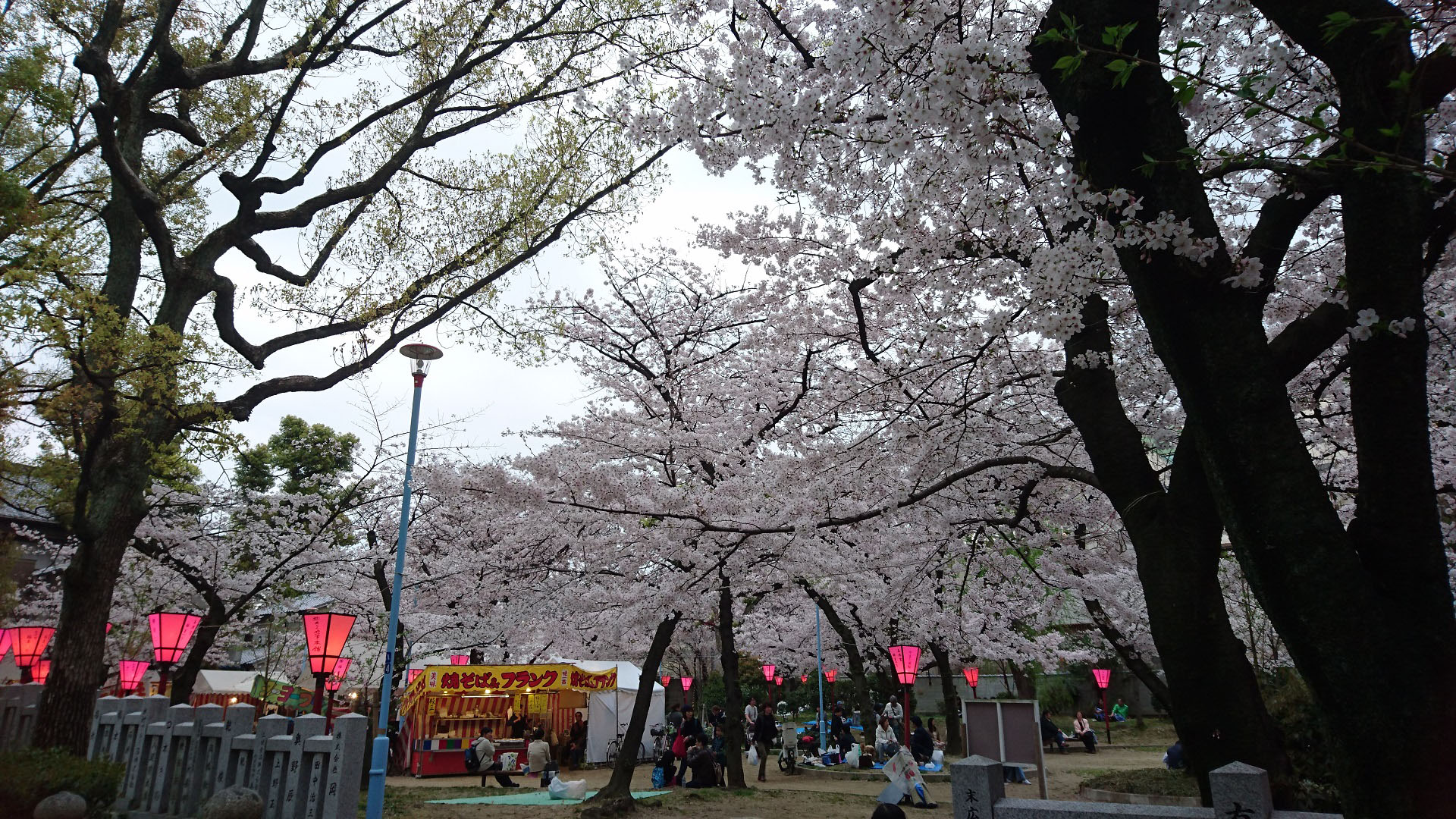 屋台もチラホラ見られ賑やかな様子でした。若者がワイワイと花見をする場所ではなく、子連れの家族や大人の集団が主な利用客でした。少し人気のないところでゆっくり花を愛でたいとの希望もあり、近くのコンビニで軽く飲み物を購入して次に訪れたのが、
