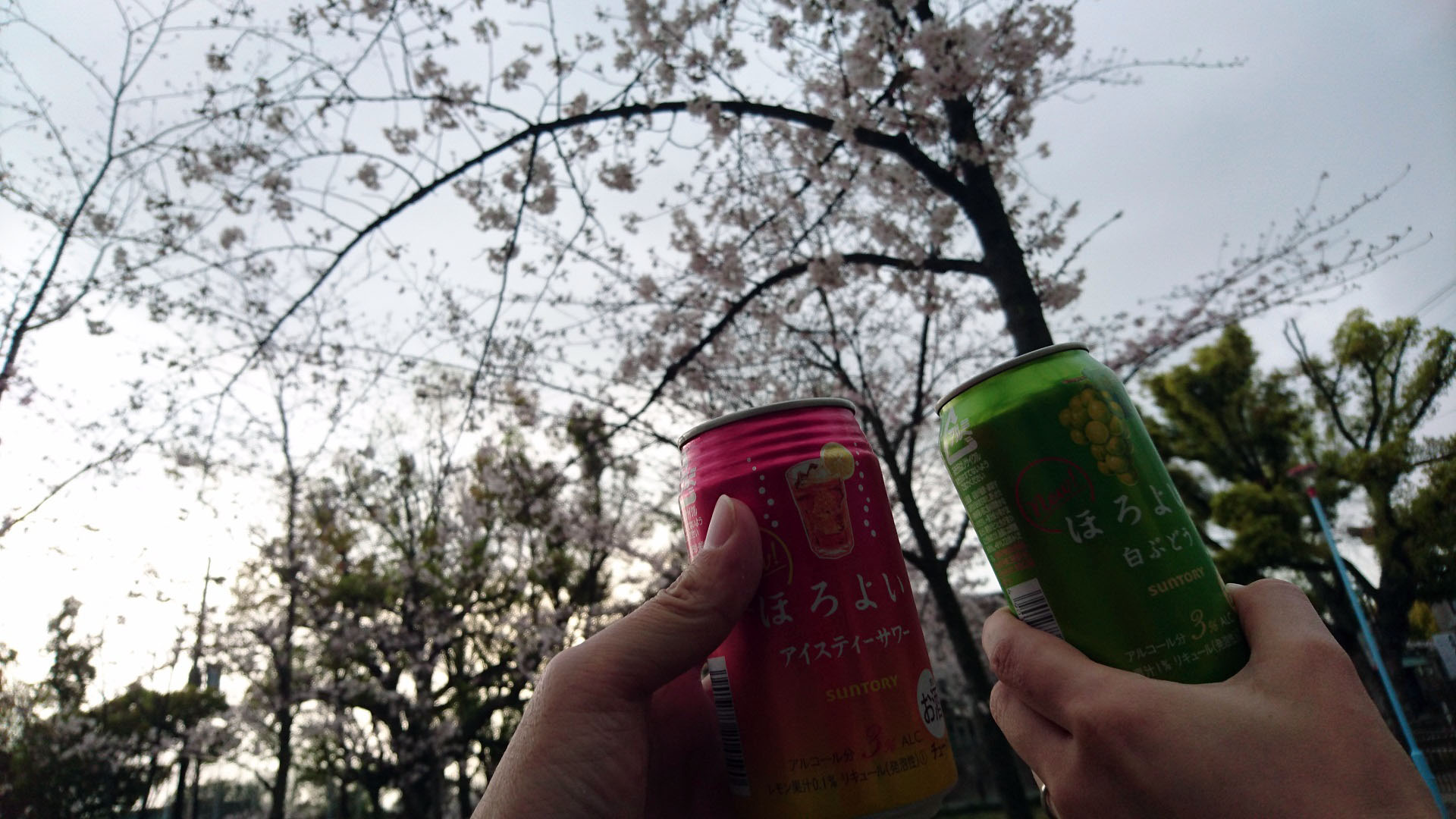 生玉さんの前の小さな公園。人気もなく、ゆっくりとほろよいで乾杯。界隈では花見をしている方はチラホラいらっしゃったのですが、おひとりさまやカップルで身軽な花見といった感じでした。昔はブルーシートのテント地帯だった所も、いまではすっかり跡形もなくなっていました。