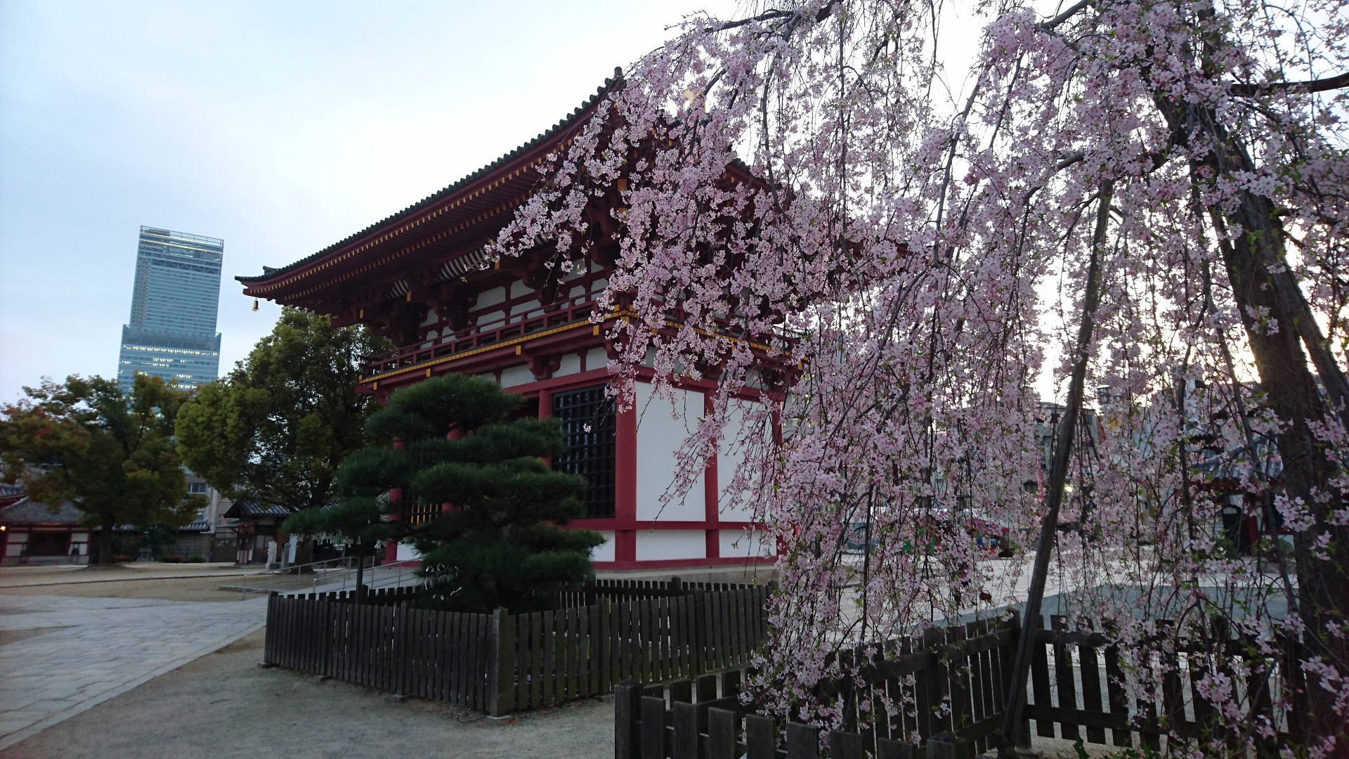 四天王寺西大門付近のしだれてるヤツ。桜と門とハルカスと。いい感じに収まった写真です。そして、久しぶりに五重塔を見ようと思い、遠くからも見えないので、近寄ってみたら。